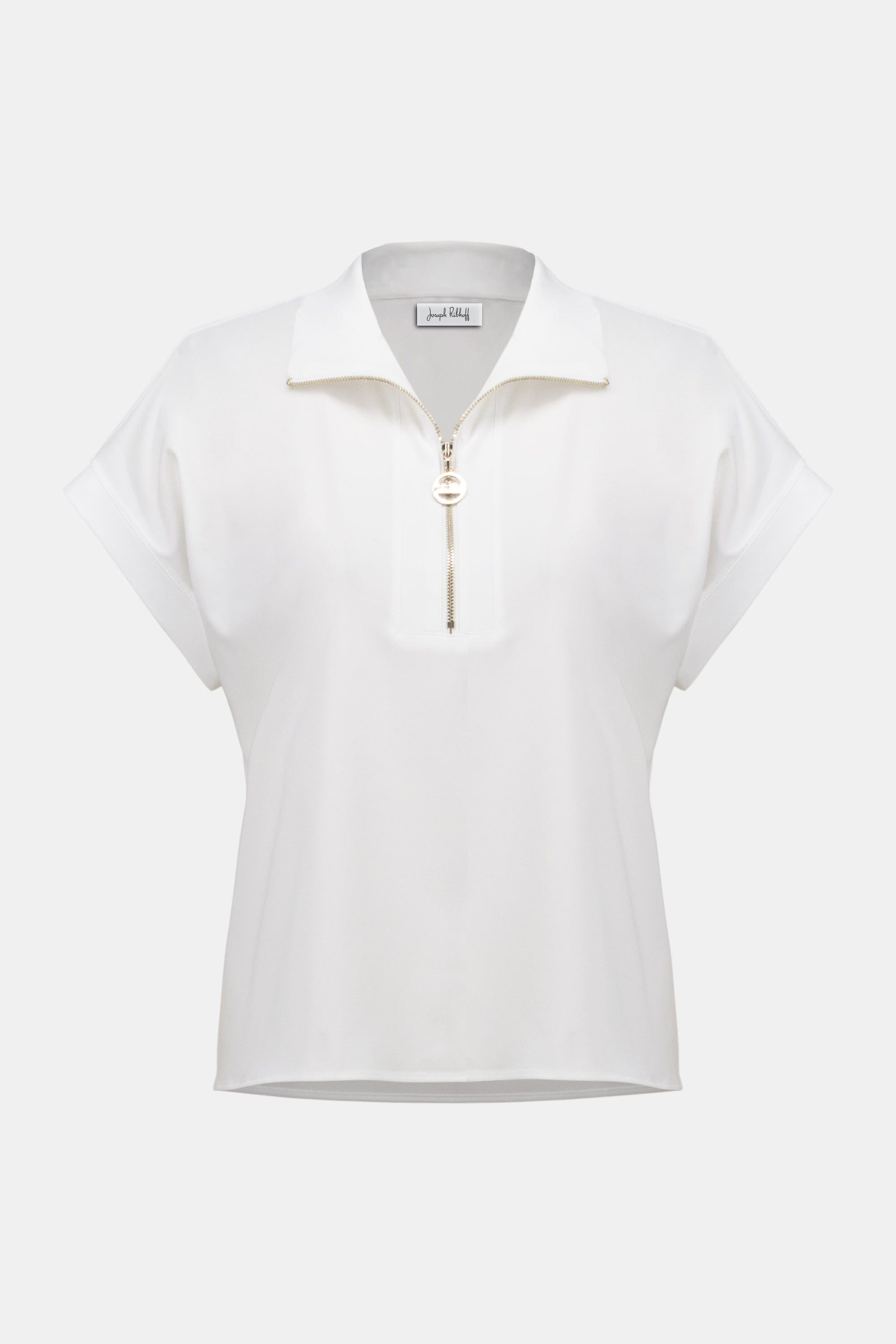 This crisp stretch poplin top delivers a modern, polished look with elevated details. Designed with a zip-front neckline featuring a signature JR logo puller, it...